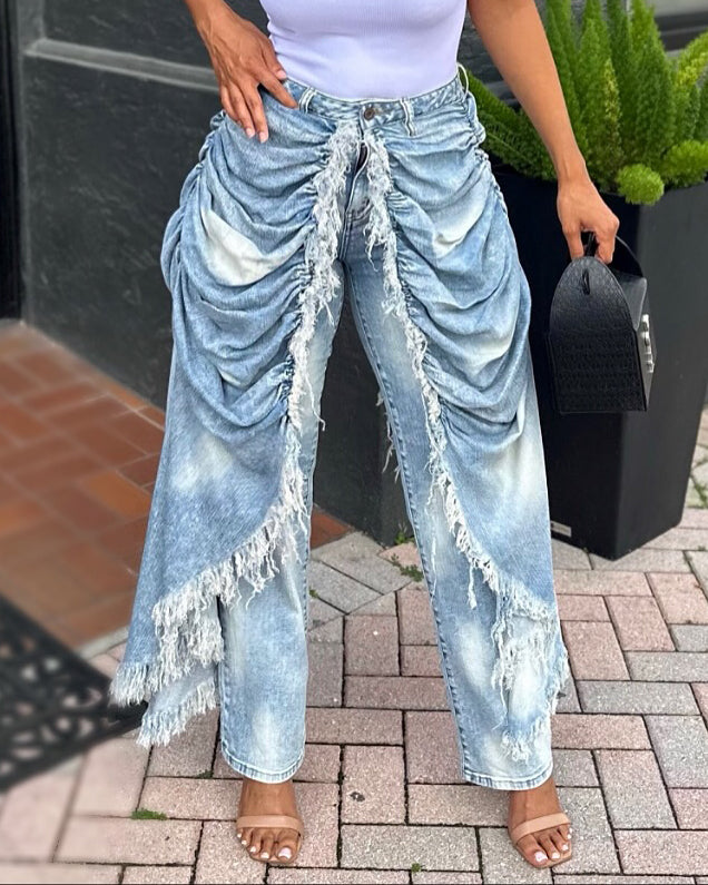 Women's Fashion Fringe Frayed Straight Leg Jeans