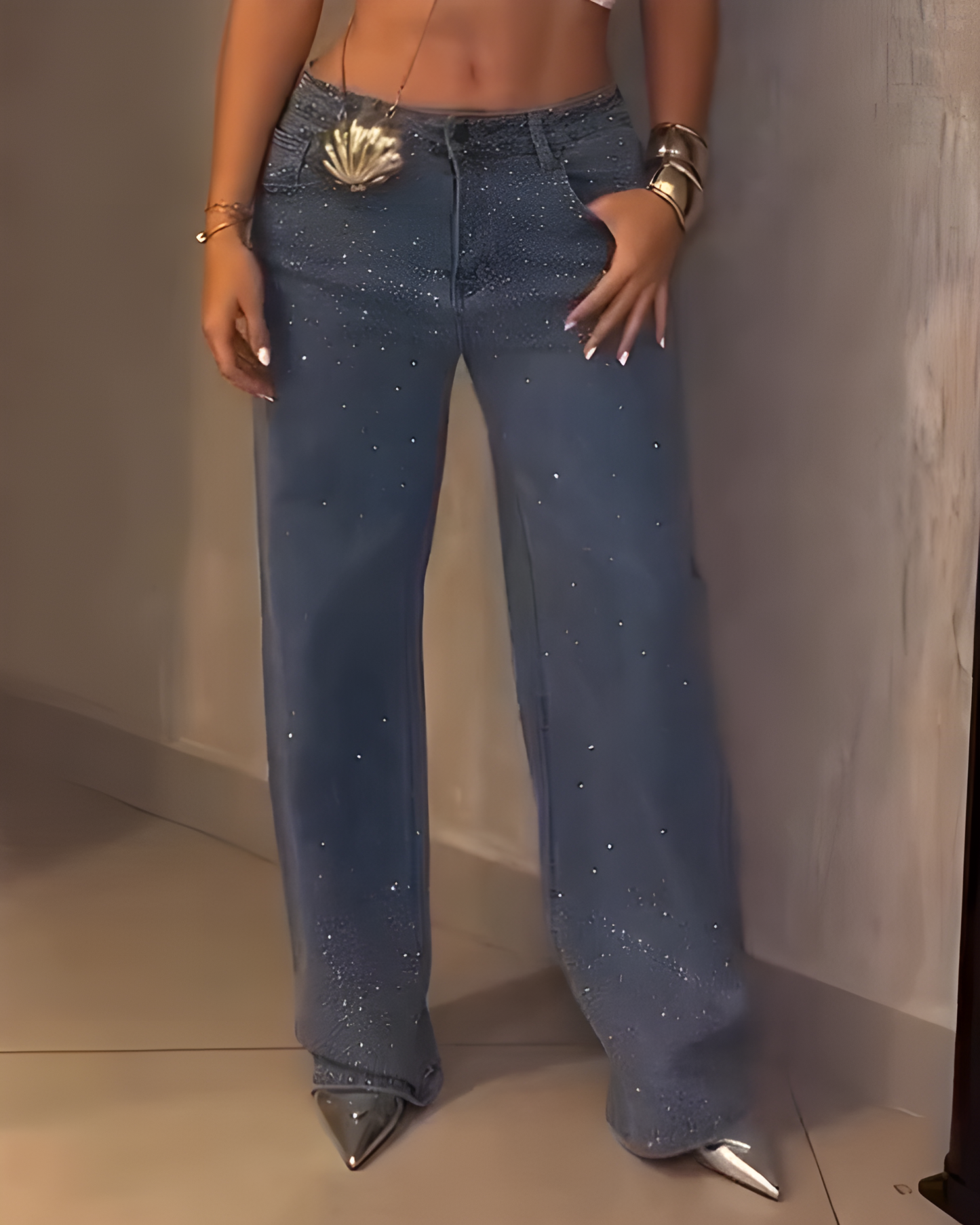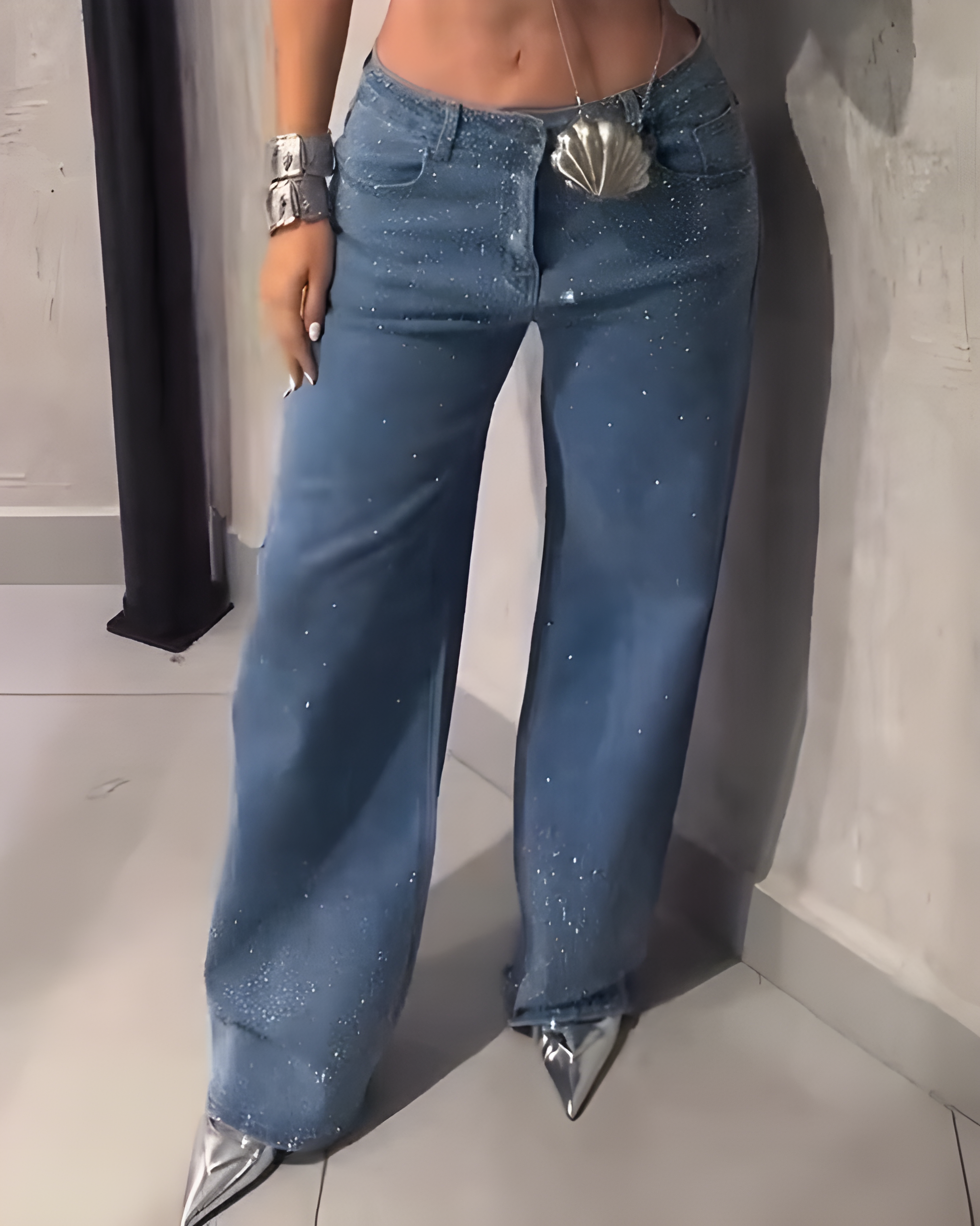 • Light up your look with the exquisite rhinestone accents that bring just the right amount of sparkle and glam to your outfit! Whether you’re hitting the town for a night out or enjoying a casual brunch with friends, these jeans will have you shining with confidence and style.
